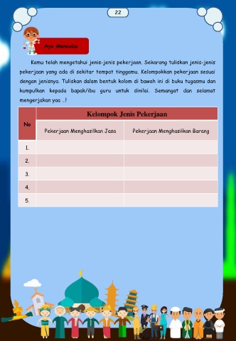 pekerjaan yang ada di sekitar tempat tinggamu. Kelompokkan pekerjaan sesuai