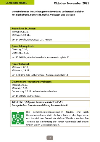 Gemeindekreise im Kirchengemeindeverband Lutherstadt Eisleben
