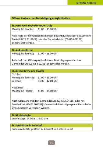 Offene Kirchen und Besichtigungsmöglichkeiten