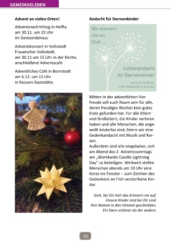 Advent an vielen Orten! Andacht für Sternenkinder Mettenschicht Advent in Luthers Höfen