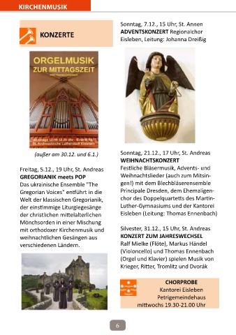 (außer am 30.12. und 6.1.) Sonntag, 21.12., 17 Uhr, St. Andreas 17.12.2025 15.30Uhr Singen auf der Weihnachtsmarktbühne
