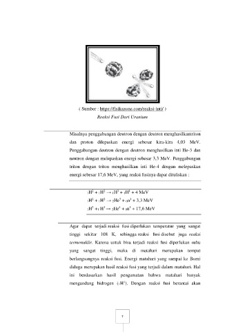 energi sebesar 17,6 MeV, yang reaksi fusinya dapat dituliskan :