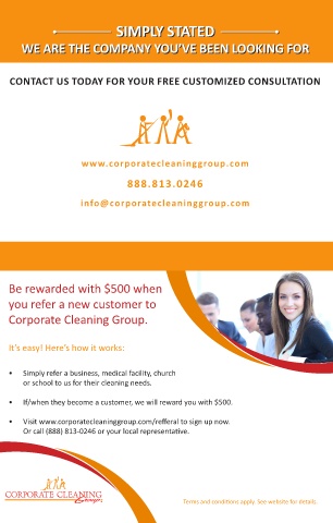 • Visit www.corporatecleaninggroup.com/refferal to sign up now.