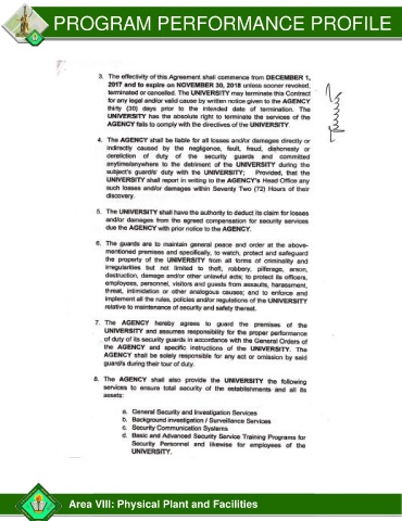 PROGRAM PERFORMANCE PROFILE Area VIII: Physical Plant and Facilities