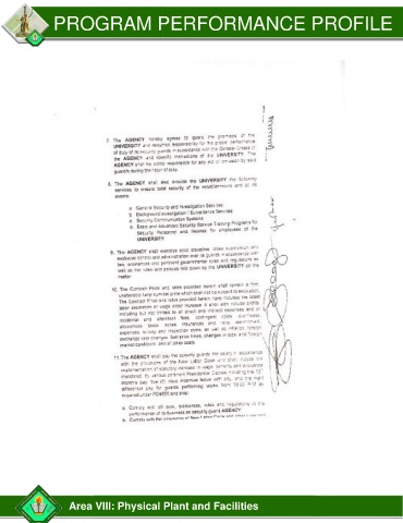 PROGRAM PERFORMANCE PROFILE Area VIII: Physical Plant and Facilities