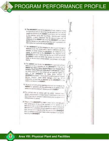 PROGRAM PERFORMANCE PROFILE Area VIII: Physical Plant and Facilities