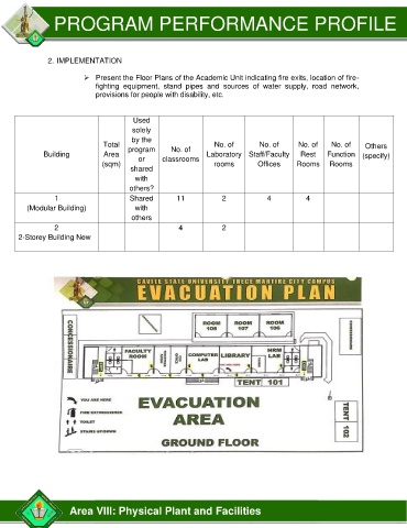 ➢ Present the Floor Plans of the Academic Unit indicating fire exits, location of fire-