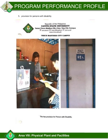PROGRAM PERFORMANCE PROFILE 5. provision for persons with disability Area VIII: Physical Plant and Facilities