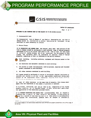 PROGRAM PERFORMANCE PROFILE Area VIII: Physical Plant and Facilities