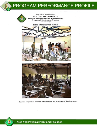 PROGRAM PERFORMANCE PROFILE Area VIII: Physical Plant and Facilities