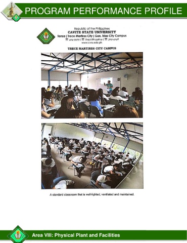 PROGRAM PERFORMANCE PROFILE Area VIII: Physical Plant and Facilities