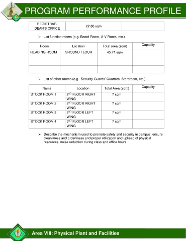 ➢ List of other rooms (e.g. Security Guards’ Quarters, Storeroom, etc.)