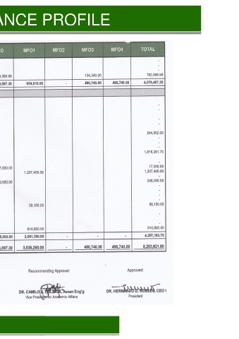 PROGRAM PERFORMANCE PROFILE Area VIII: Physical Plant and Facilities