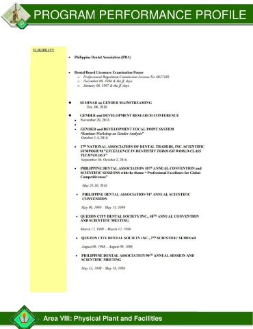 PROGRAM PERFORMANCE PROFILE Area VIII: Physical Plant and Facilities