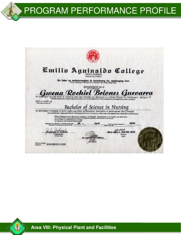 PROGRAM PERFORMANCE PROFILE Area VIII: Physical Plant and Facilities
