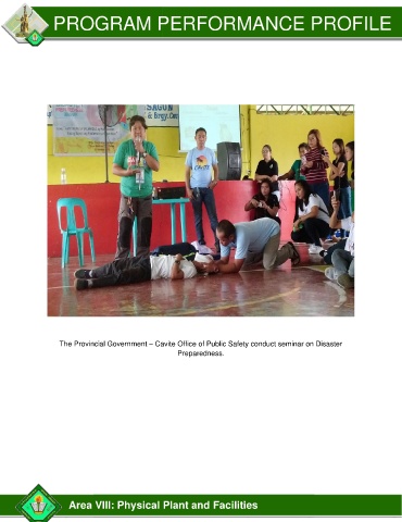 PROGRAM PERFORMANCE PROFILE The Provincial Government – Cavite Office of Public Safety conduct seminar on Disaster Preparedness. Area VIII: Physical Plant and Facilities