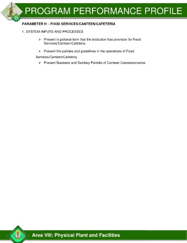 PARAMETER H – FOOD SERVICES/CANTEEN/CAFETERIA