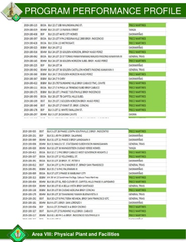 PROGRAM PERFORMANCE PROFILE Area VIII: Physical Plant and Facilities