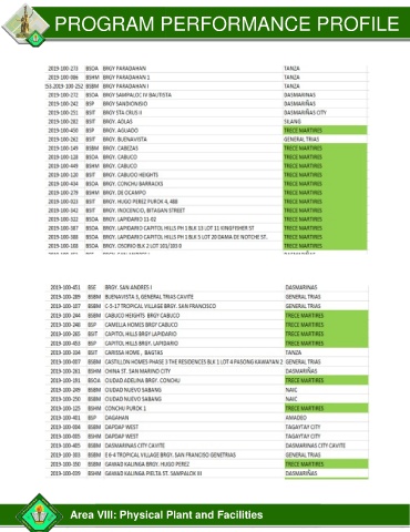 PROGRAM PERFORMANCE PROFILE Area VIII: Physical Plant and Facilities