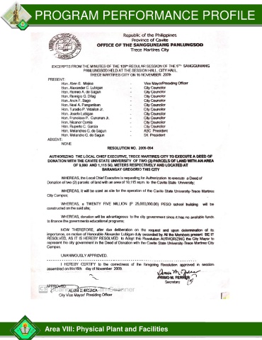 PROGRAM PERFORMANCE PROFILE Area VIII: Physical Plant and Facilities