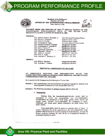 PROGRAM PERFORMANCE PROFILE Area VIII: Physical Plant and Facilities