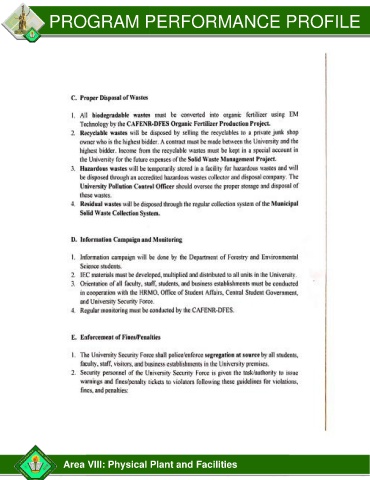 PROGRAM PERFORMANCE PROFILE Area VIII: Physical Plant and Facilities