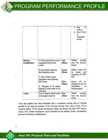 PROGRAM PERFORMANCE PROFILE Area VIII: Physical Plant and Facilities