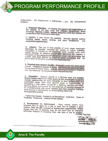 PROGRAM PERFORMANCE PROFILE Area II: The Faculty