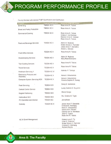 PROGRAM PERFORMANCE PROFILE Area II: The Faculty
