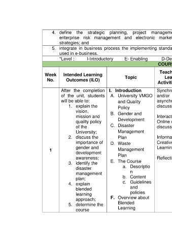 of the unit, students A. University VMGO and/or Learning Syllabus 1-page the end of