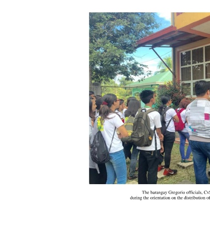 The barangay Gregorio officials, CvSU-Trece faculty and NSTP students during the orientation on the distribution of IEC materials on Solid Waste Segregation 46