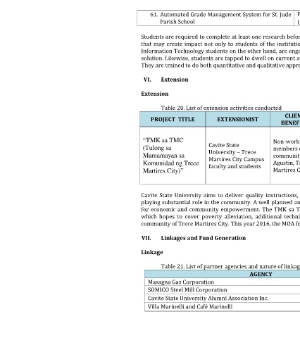 community of Trece Martires City. This year 2016, the MOA for this extension program is on the process.