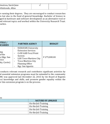 community of Trece Martires City. This year 2016, the MOA for this extension program is on the process.