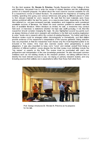 For the third speaker, Dr. Renato N. Pelorina, Faculty Researcher of the College of Arts