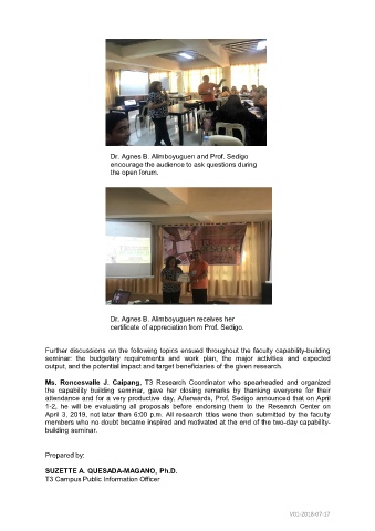 Ms. Roncesvalle J. Caipang, T3 Research Coordinator who spearheaded and organized