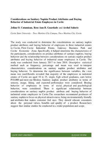 attributes and buying behavior of industrial estate employees in Cavite. The