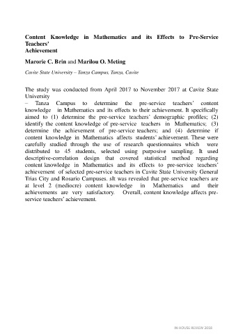 – Tanza Campus to determine the pre-service teachers’ content