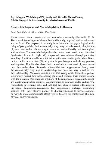Adults Engaged in Relationship in Selected Areas of Cavite