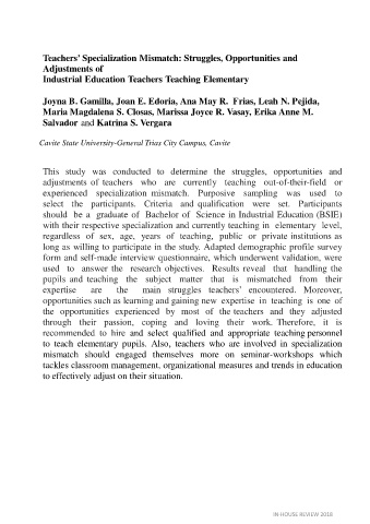 with their respective specialization and currently teaching in elementary level,