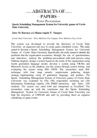 Games of Cavite State University. Specifically, the study aimed to identify the