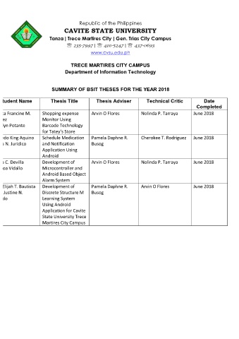 SUMMARY OF BSIT THESES FOR THE YEAR 2018
