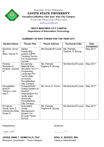 SUMMARY OF BSIT THESIS FOR THE YEAR 2017