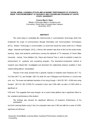 Keywords: Social Media, Learning Styles, Academic Performance, Guidance and
