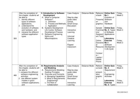 After the completion of II. Introduction to Software Case Analysis Distance Mode Referenc Online Quiz Friday,