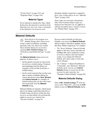 • Set the initial materials that can then pop- “Dynamic Cabinet Defaults” on page 606.