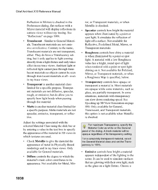 • Translucent - Similar to General Materi- light off a surface. Not available for