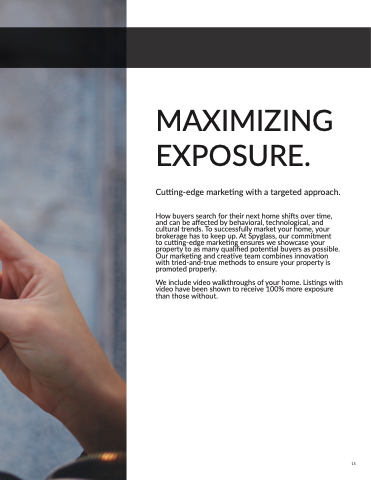 How buyers search for their next home shifts over time, and can be affected by behavioral, technological, and cultural trends. To successfully market your home, your brokerage has to keep up. At Spyglass, our commitment to cutting-edge marketing ensures we showcase your property to as many qualified potential buyers as possible. Our marketing and creative team combines innovation with tried-and-true methods to ensure your property is promoted properly.