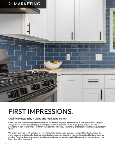 One of the first activities we’ll schedule once we are finished staging is a photo shoot of your home. Why? Spyglass always utilizes professional photography to capture the features of your home. High-quality pictures are vital to generating in-person showings. From the very first online “showing,” outstanding photography will ensure your property shines.