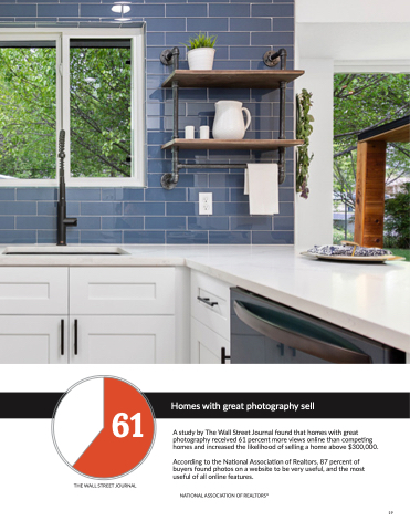A study by The Wall Street Journal found that homes with great photography received 61 percent more views online than competing homes and increased the likelihood of selling a home above $300,000.