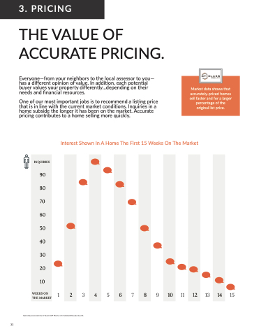 One of our most important jobs is to recommend a listing price that is in line with the current market conditions. Inquiries in a home subside the longer it has been on the market. Accurate pricing contributes to a home selling more quickly.